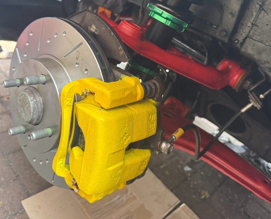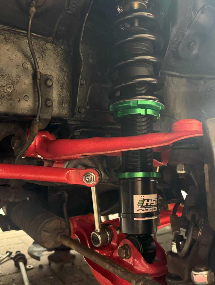 All wishbones removed, bushes extracted, sand blasted & painted, poly bushes fitted.